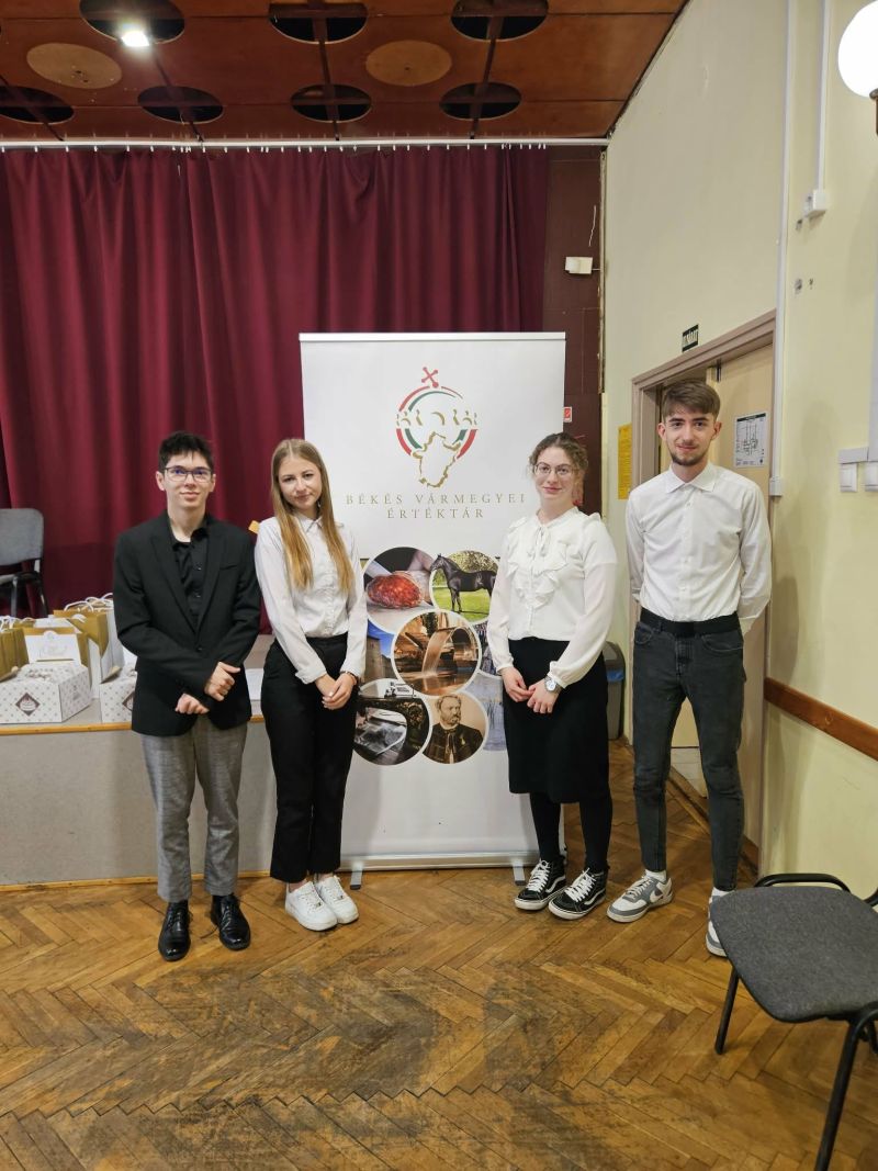 Lezárult a Békés Vármegye Önkormányzata által szervezett „Viharsarki értékeink” vetélkedősorozat legutóbbi szakasza. A járási forduló sikeres teljesítése után iskolánk 13/A osztályos csapata kapott meghívást a rangos döntőbe, ahol a vármegye legjobbjaival mérhették össze tudásukat.