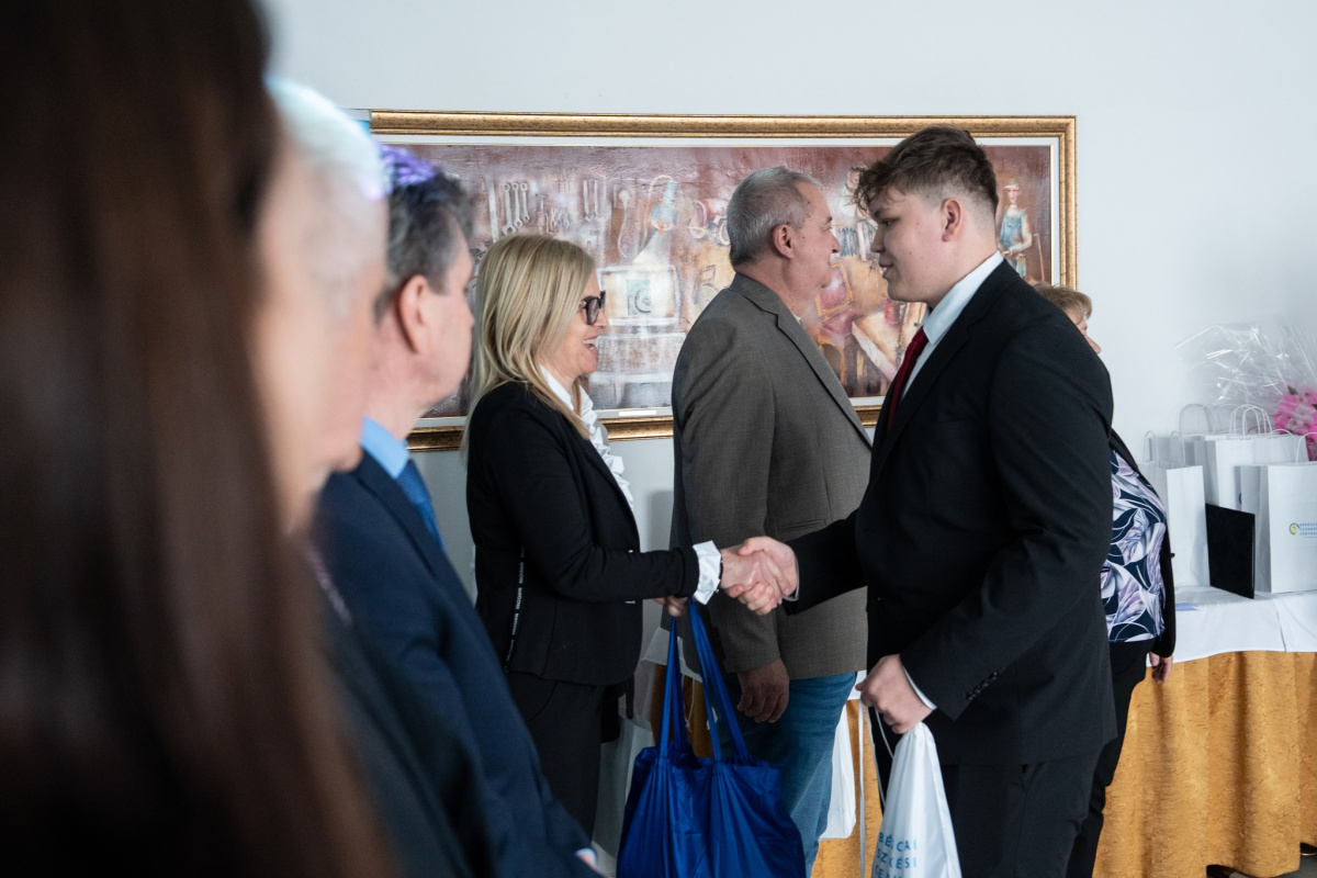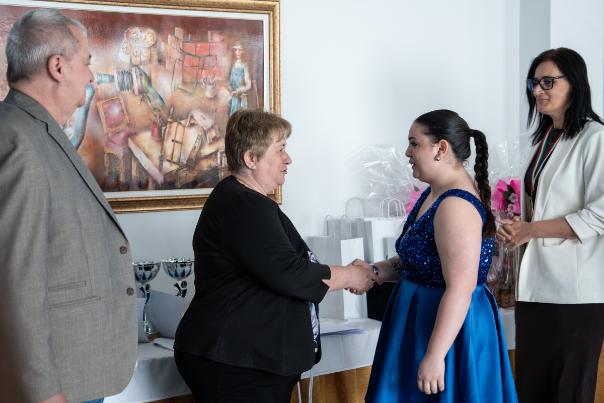– File István Levente, a Lónyay Menyhért Baptista Technikum és Szakképző Iskola tanulója, felkészítő oktatója Balázsné Sipos Éva
