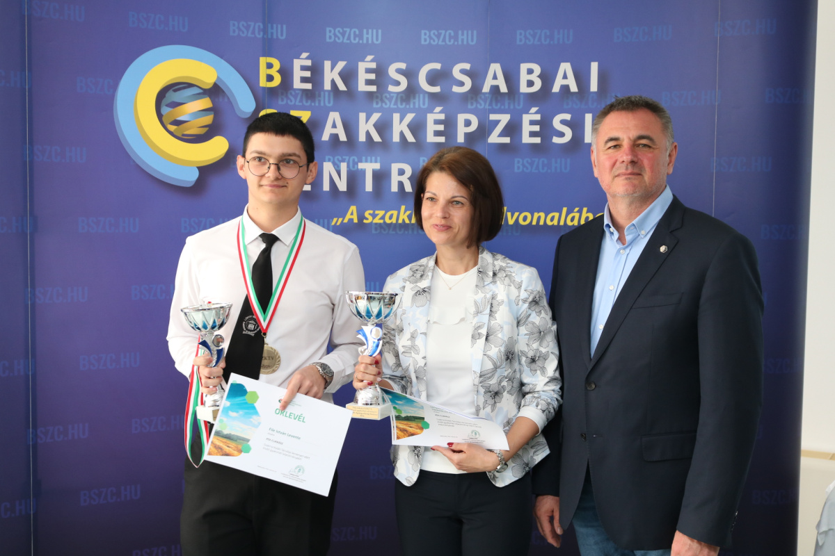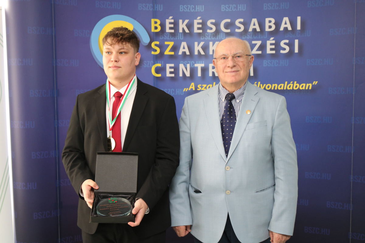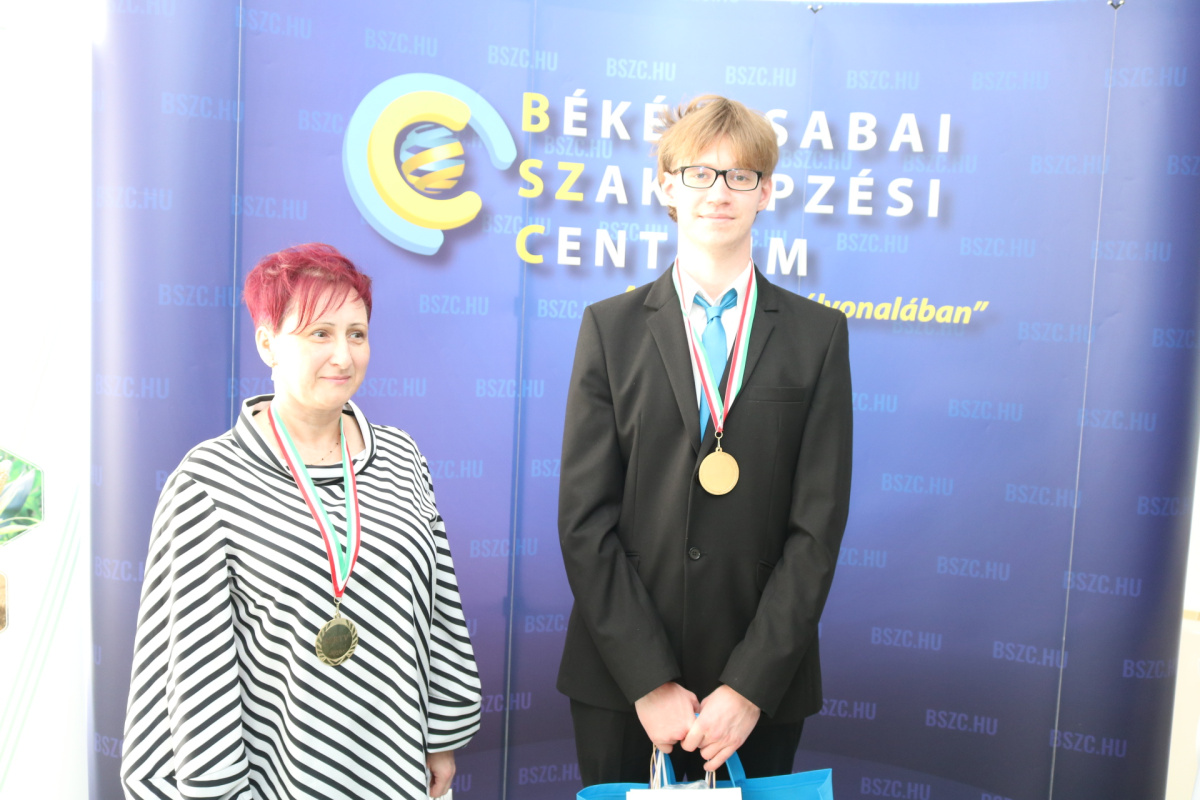 – Drugan Dániel János, a Békéscsabai SZC Zwack József Technikum és Szakképző Iskola tanulója, felkészítő oktatója Kovács Sándor