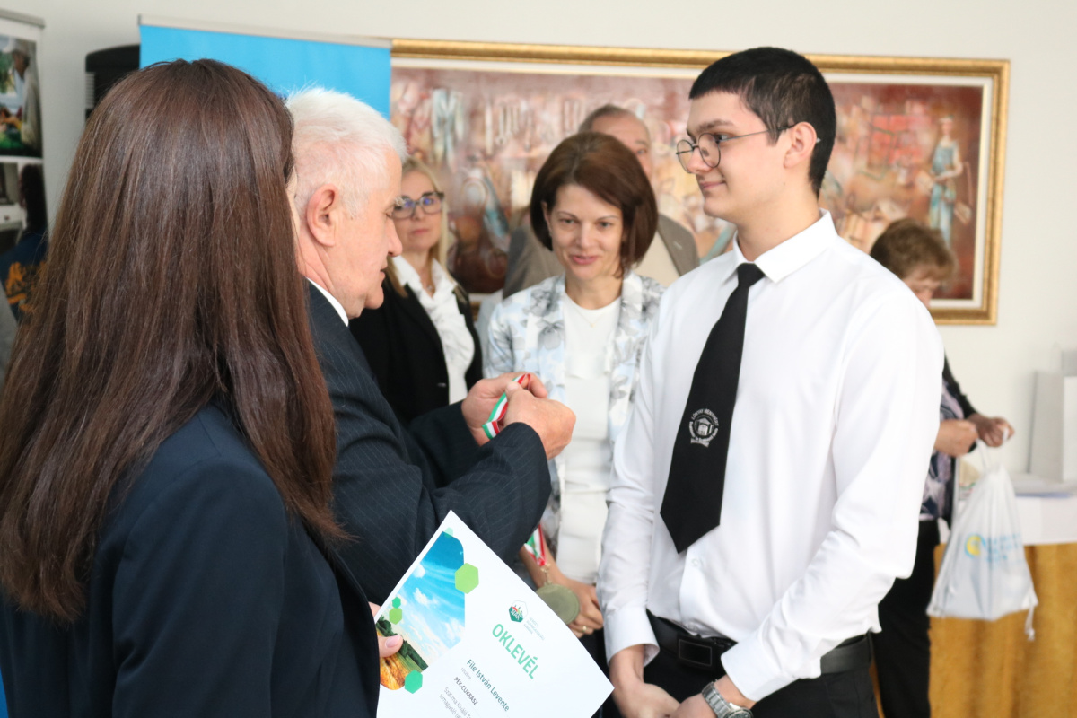 – File István Levente, a Lónyay Menyhért Baptista Technikum és Szakképző Iskola tanulója, felkészítő oktatója Balázsné Sipos Éva