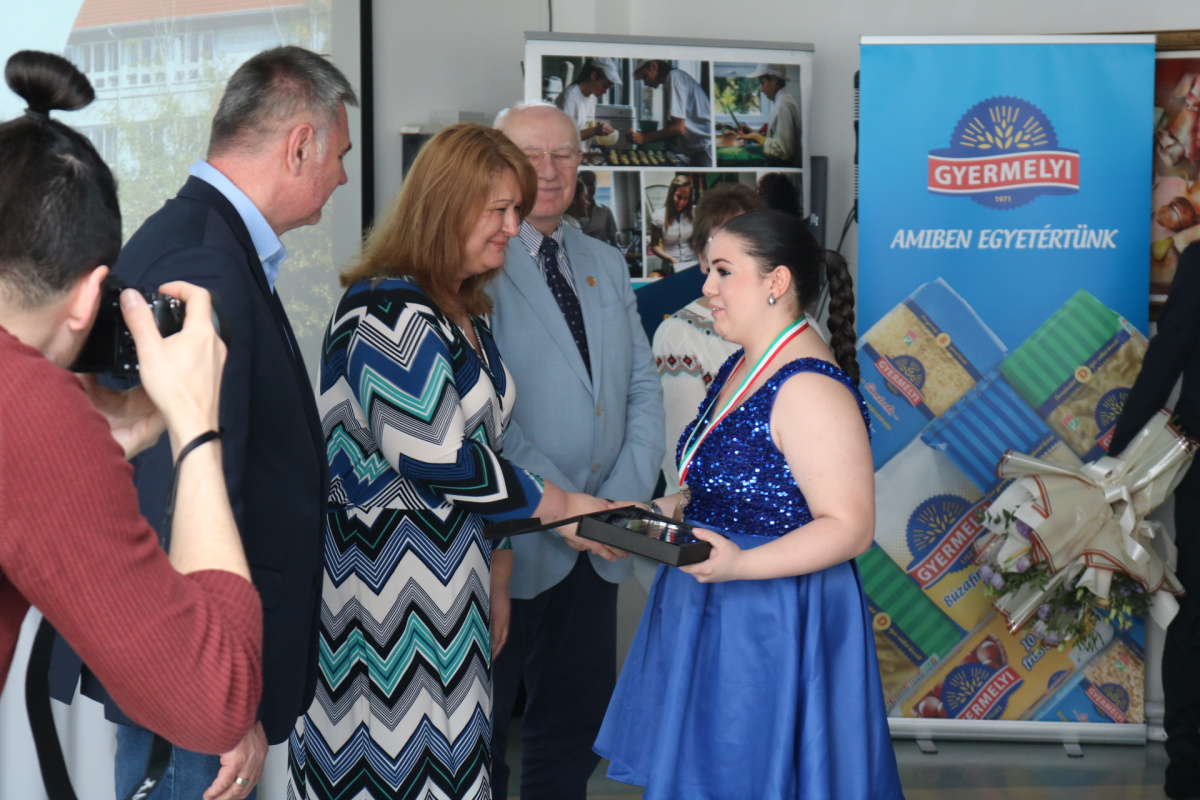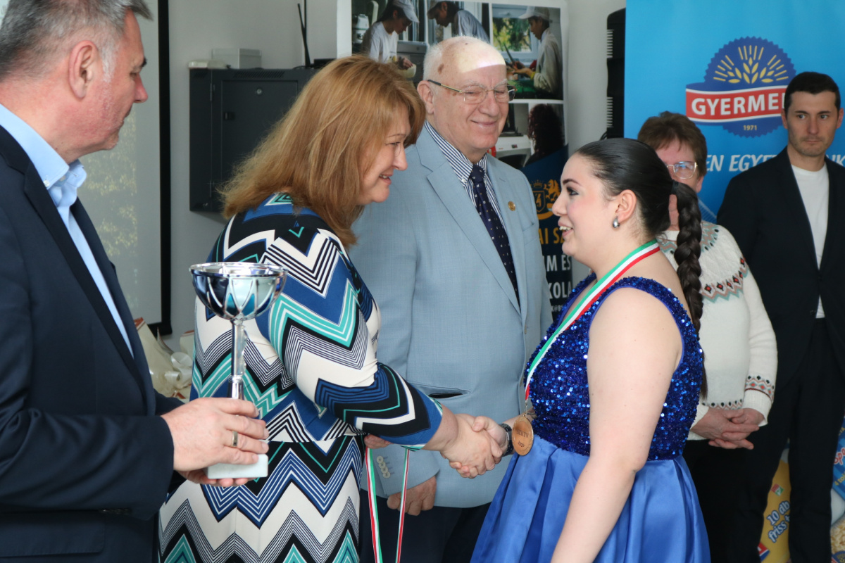 Ismét büszkék lehetünk! Csütörtökön délelőtt ünnepélyes díjátadón derült fény az idei, a Nemzeti Agrárgazdasági Kamara által szervezett Pék-cukrász Szakma Kiváló Tanulója Verseny eredményeire, melynek lebonyolítására iskolánkban került sor. A 15 döntőbe jutott tanuló közül, 8 összteljesítménye érte el a Versenyszabályzatban meghatározottakat, így ők mindannyian mentesülnek valamennyi vizsgatevékenység teljesítése alól, és 100 %-os teljesítménnyel, jeles eredménnyel zárják tanulmányaikat.
